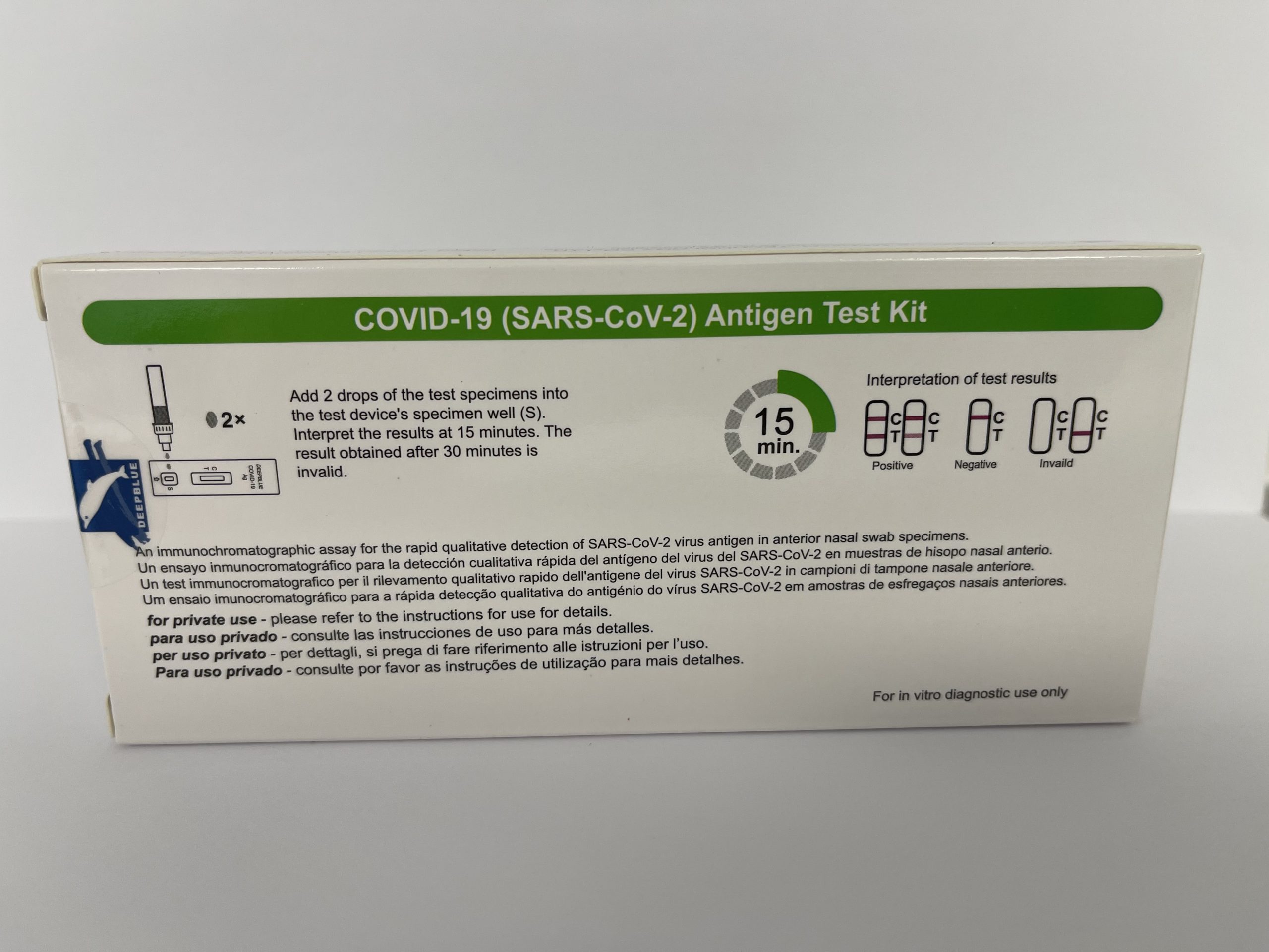 Single use lateral flow test, for home use and self testing for Sars-COV.